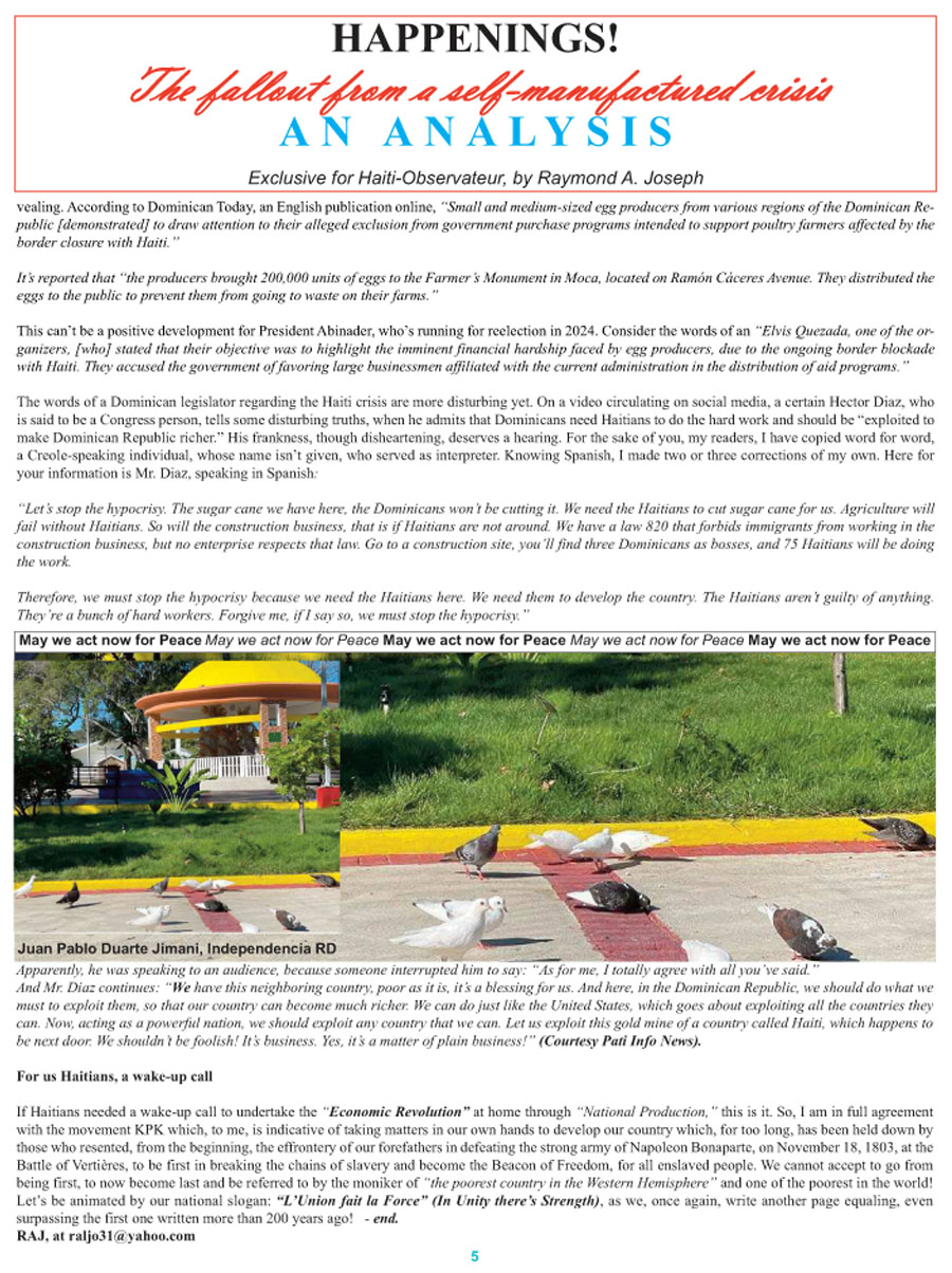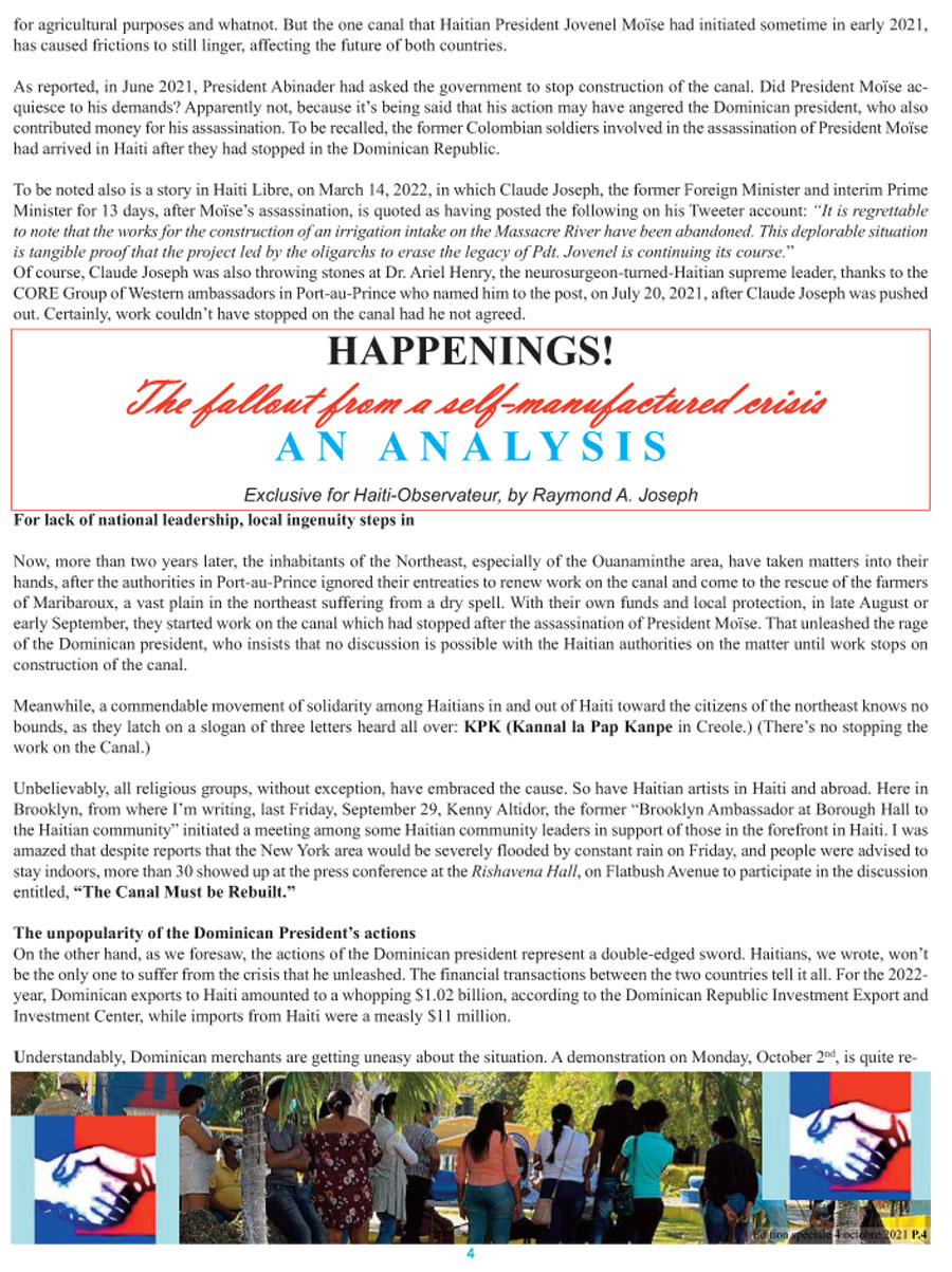 cet article est publié par l’hebdomadaire Haïti-Observateur, VOL. LIII, No. Édition spéciale Canada du 4 octobre 2023, et se trouve en P.1, 4, 5 à : specialho4octobre2023Printweb