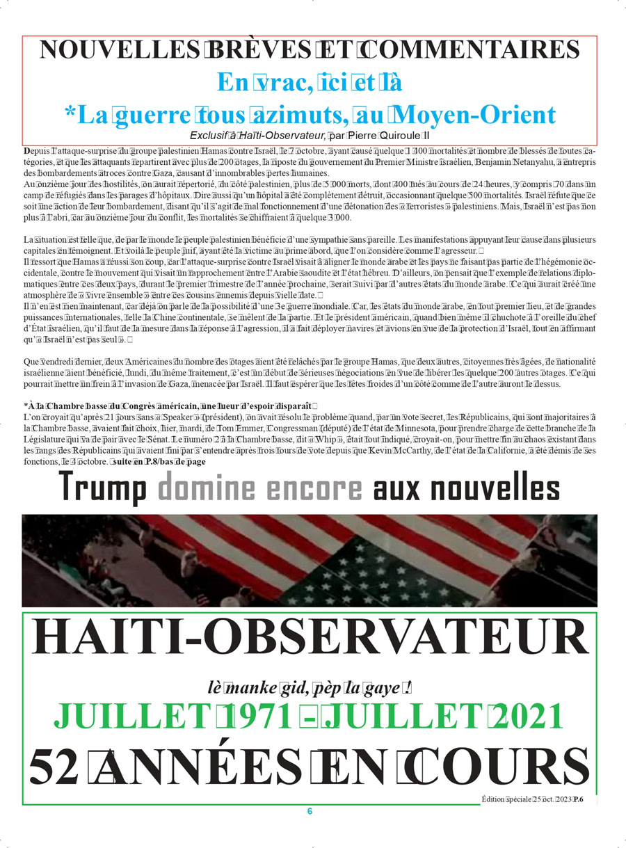 cet article est publié par l’hebdomadaire Haïti-Observateur, VOL. LIII, No.38 Édition spéciale Canada du 25 octobre 2023, et se trouve en P.1, 6 à : special h-o 25 oct 2023
