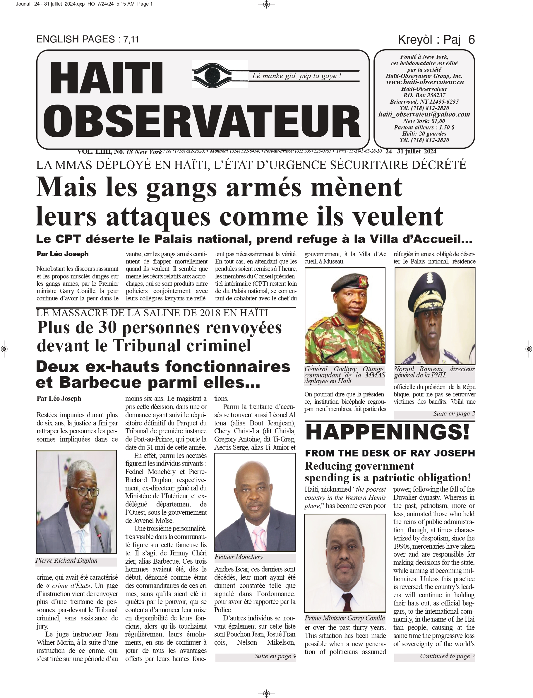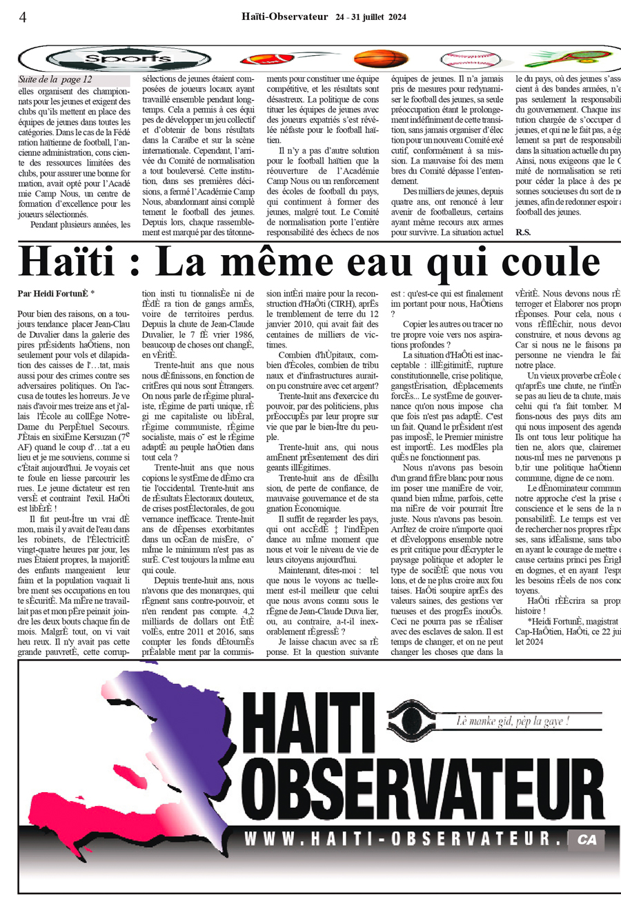 cet article est publié par l’hebdomadaire Haïti-Observateur New York, VOL. LIIII, No.18 du 24 juillet 2024, et se trouve en P.4 à : h-o 24 july 2024
