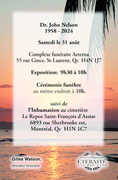 Je me saisis du droit de dire. Au pas de l’hebdomadaire qui héberge. Là, même après cinquante-trois ans d’existence. Un autre des nôtres vient de se lire ainsi : et terram liberat (et la terre libère). Saint-John Kauss est en sa doublure, John Nelson, docteur en sa matière. Surtout, écrivain prolifique dont la pensée s’est si souvent transportée à travers les colonnes de l’hebdo. Homme de saisons, d’époques, des traditions et de passions. De fraternité par filii, pourquoi ? Naturellement partageant la passion du père (major Nelson), avec son frère Saint-Valentin Kauss (Valentino Nelson), d’où le duo Kauss & Kauss. Je ne fais pas ici dans la pratique de nécrologue, l’œuvre de John est encore là, si intrigante. Mieux, St-Kauss est le spectre découplé de St-John in Kauss, il se fédère de saint en saint jusqu’à St-Michel-de-Valentin. Libera me Domine!