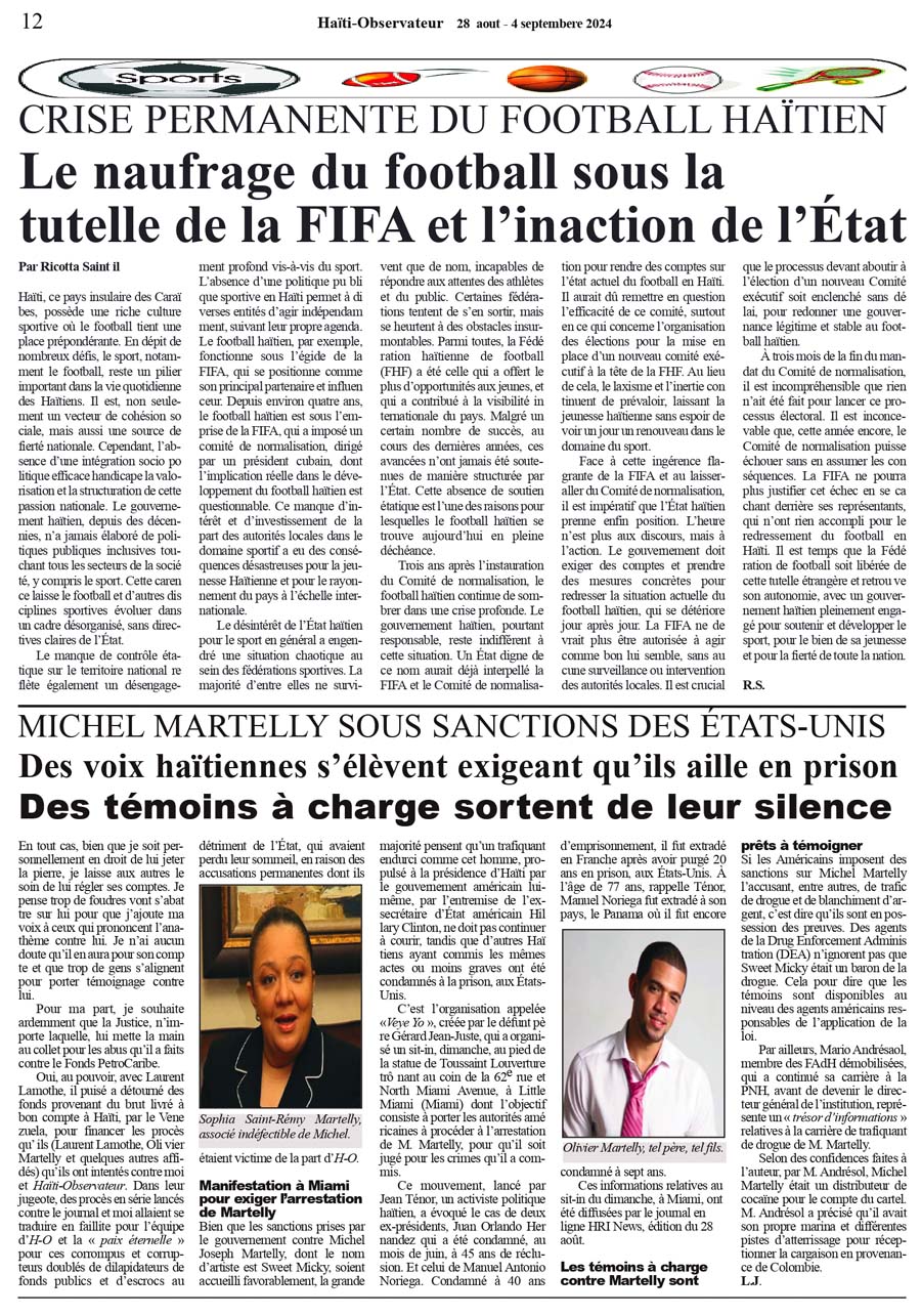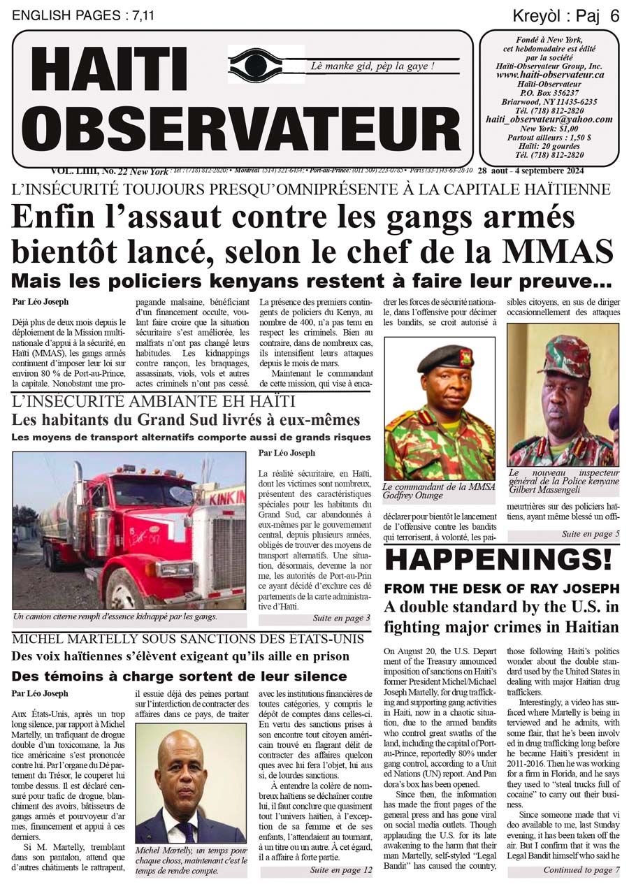 Cet article est publié par l’hebdomadaire Haïti-Observateur VOL. LIIII, No. 22 New York P1, 12 du h-o 28 aout 2024
