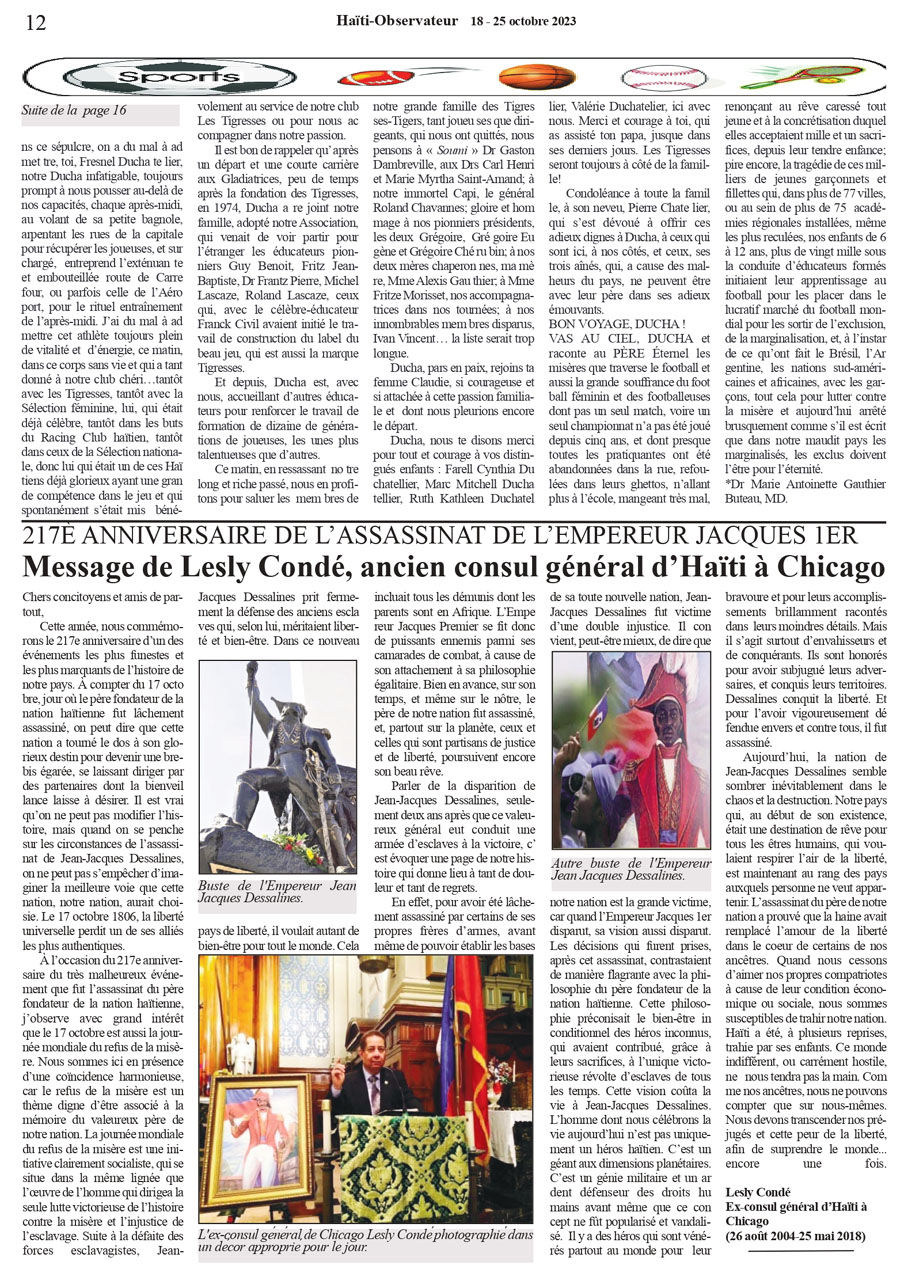 - Message de Lesly Condé, ancien consul général d’Haïti à Chicago