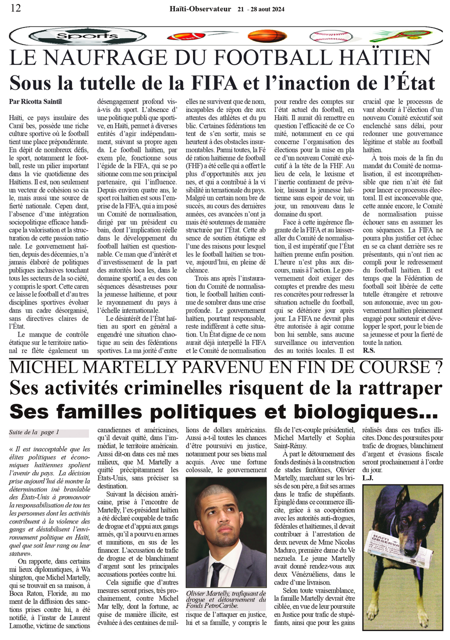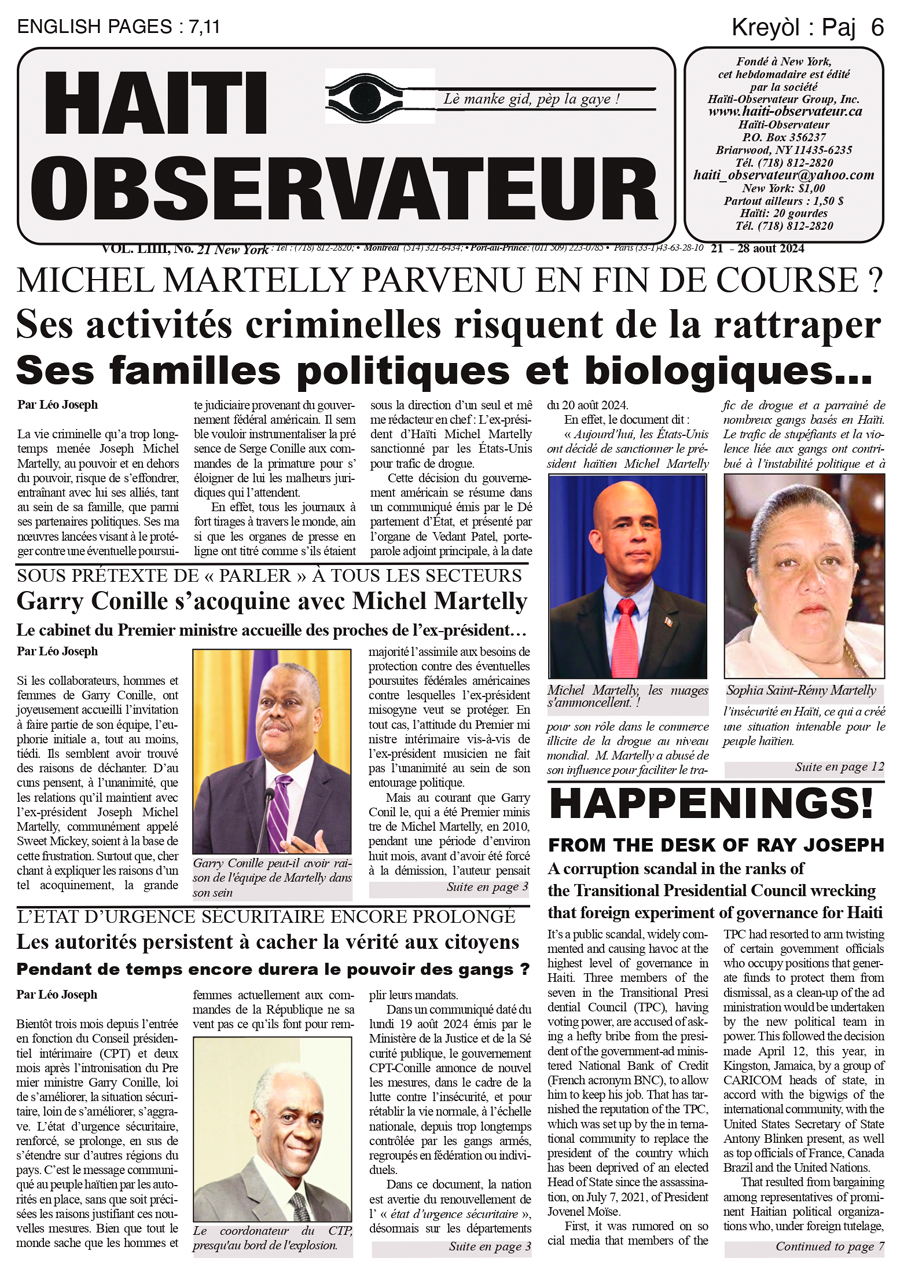 Cet article est publié par l’hebdomadaire Haïti-Observateur VOL. LIIII, No. 21 New York et se retrouve en P1, 12 du h-o 21 aout 2024